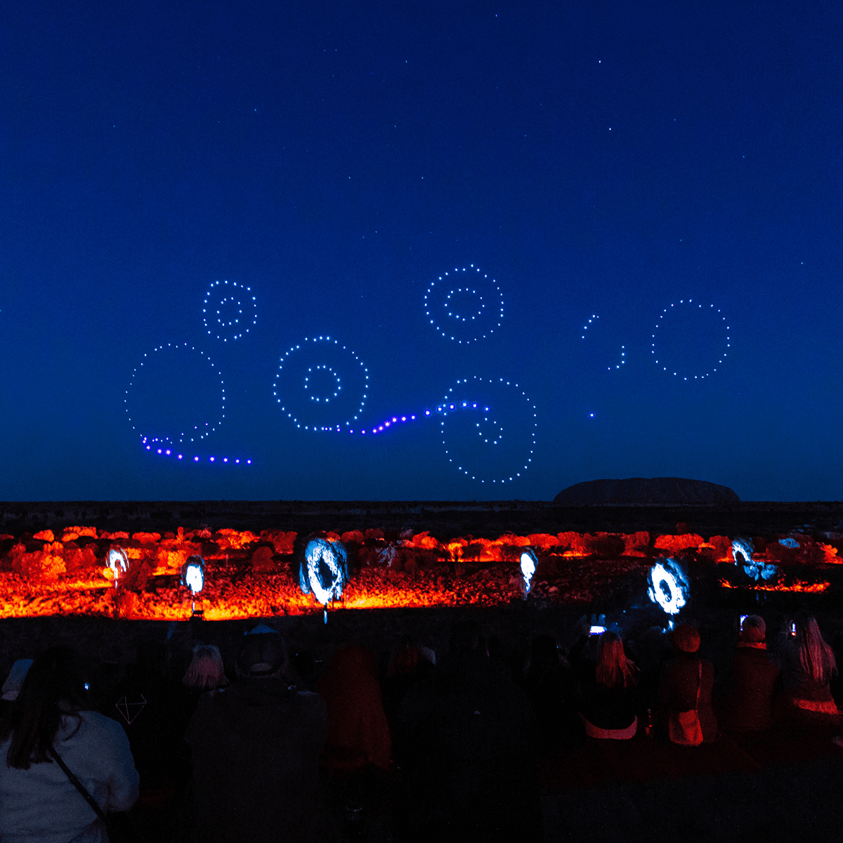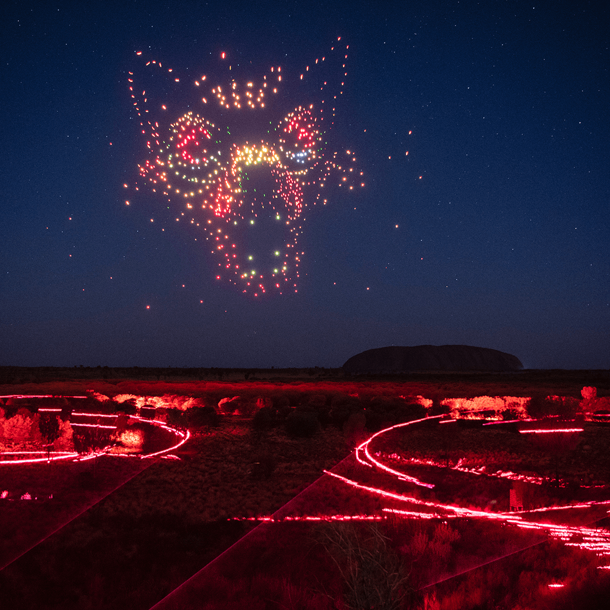 Anangu hold the Mala story, from Kaltukatjara to Uluru, through a drone, sound and light show designed and produced by RAMUS.